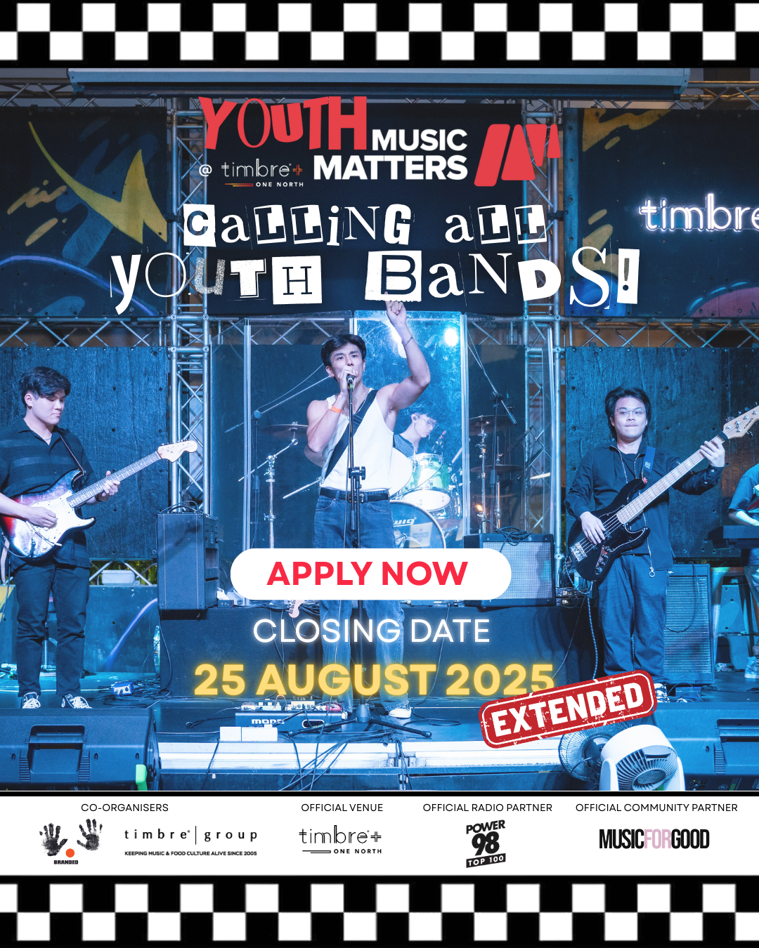 Youth Music Matters is calling on Singapore’s aspiring bands (ages 15-25) to showcase their talent. Eight finalists will perform live at the finals